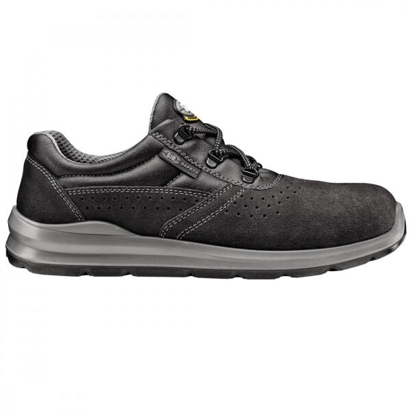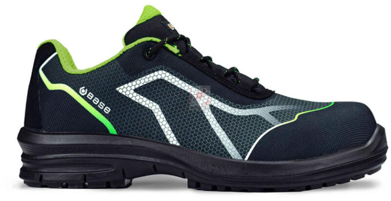 Base S3 munkavédelmi cipő magasabb vízálló képességű technikai textil felsőrésszel. Kompozit orrvédelemmel és kompozit talpátszúrás elleni védelemmel ellátott, ütéscsillapítás a saroknál. Antisztatikus és szénhidrogéneknek ellenálló egyedi kialakítású talp, a férfi és női lábnak megfelelő külön kapli szélességgel is választható. Javasolt felhasználási ter