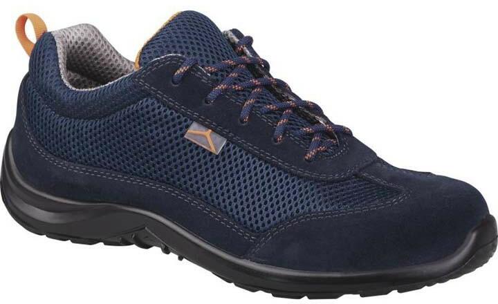 Sportos munkavédelmi félcipő A termék megfelel a következő EN ISO 20344:2011, EN ISO 20345:2011 szabványoknak. Felsőrész : Hasíték velúrbőr és mesh poliészter Bélés : Poliészter Talpbetét : Kivehető előre formázott - EVA habon poliészter Talp : Befecskendezett - Egyrétegű PU