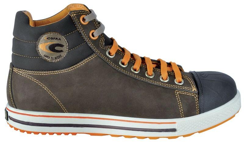 Klasszikus "ALL STAR" tornacipő fazonú munkavédelmi lábbeli Vízlepergető nubukbőr felsőrész barna, narancs dekorációs betétekkel Alumínium védőkapli TALP: Csúszásmentes (SRC), könnyített, kétrétegű PU/PU talp, antisztatikus, olajálló, mechanikusan öntisztító kialakítás Energiaelnyelő sarokrész KÉNYELMI TALPBETÉT: PU15 a sarokrésznél 15 mm vastag, antibakteriális