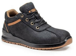 Anyag: Felső része: fordított bőr és szövet. Bélés: textil anyag. Kivehető talpbetét. Talpa: gumi, modern design, oldala magas a nagyobb stabilitás érdekében. Acél orrmerevítő. Zárt sarokrész, antisztatikus tulajdonságok. Energiaelnyelő sarokrész. Jól láthatósági fényvisszaverő elemek. MUNKAVÉDELMI KAT. : S1 SRA NORMA: ISO 20345:2011