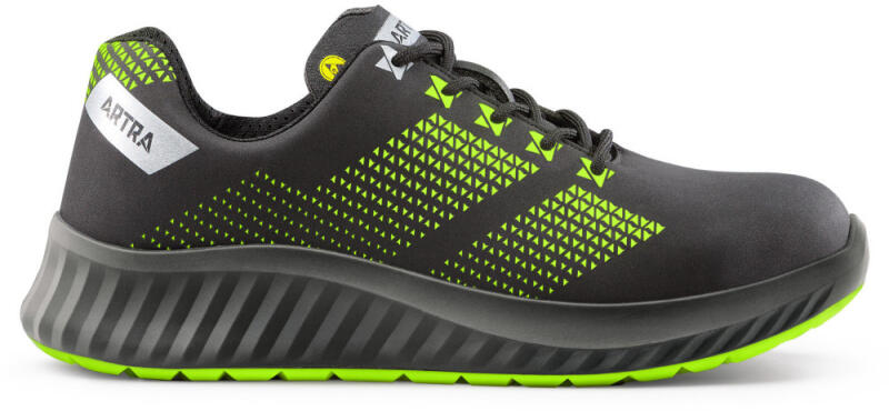 Kiváló légáteresztő képességgel rendelkező ESD-s munkavédelmi cipő hidrofób mikroszálas nubukbőr felsőrésszel és memóriahabos poliuretán talpbetéttel. Felsőrész A cipő felső része hidrofób mikroszálas 2.2 mm vastag NUBUCK PRO nubuk bőrből készült, mely kiváló ellenállóképességet biztosít, valamint jó légáteresztő képességgel rendelkezik, így egész napos