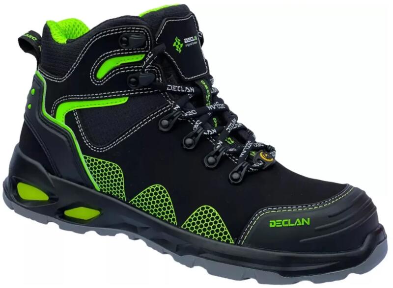 Declan Kondenz S3 SR ESD munkavédelmi bakancs Az EN ISO 20345 S3 ESD SR szabványnak megfelelő Declan Kondenz bakancs a modern munkavédelmi követelmények teljesítésére készült. A vízálló hidro-nubukbőr felsőrész biztosítja a lábak szárazságát, még a legnehezebb munkakörülmények között is. A kompozit orrvédő könnyű és strapabíró, védelmet nyújt a leeső tárgyak