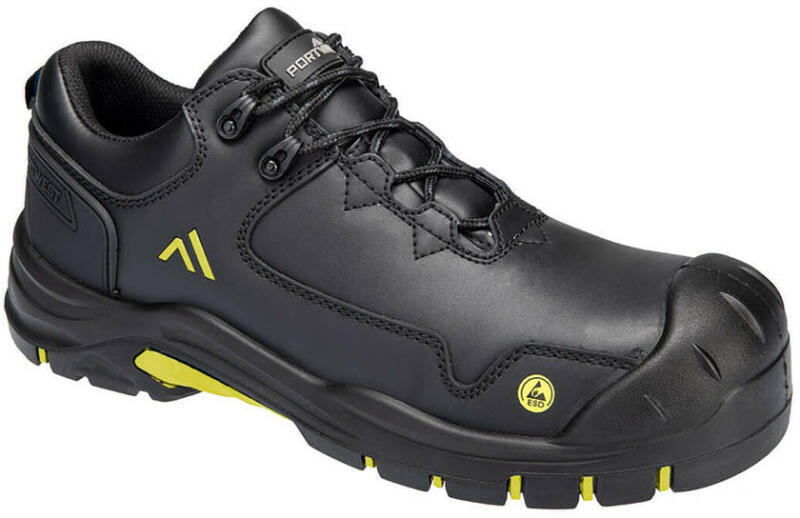 Portwest FC19 munkavédelmi cipő Hőálló talppal, ESD tulajdonságokkal és kiváló csúszásállósággal rendelkezik. A kialakított talpmintázat elősegíti a biztonságos munkavégzést az egyenetlen terepen, miközben ellenáll az üzemanyagnak és a víznek is. Szabványok: EN ISO 20345:2012 S3S IEC 61340-5-1:2016 Jellemzők: Alkalmas ESD környezetben történő használatra Hőálló