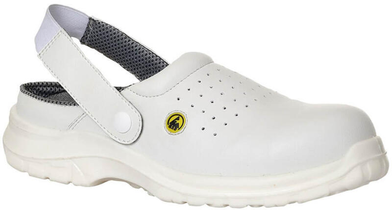 Könnyű biztonsági klumpa perforált felsőrésszel a további légáteresztő képesség érdekében. 100% fémmentes, műanyag szegecses rögzítővel. Alkalmas ESD környezetben történő használatra Megfelel az EN 61340-5-1 szabványnak. Slip-on sziluett Állítható rugalmas sarokpánt Perforált felsőrész segíti a légáramlást meleg környezetben Törölje le a felső részt Öntisz