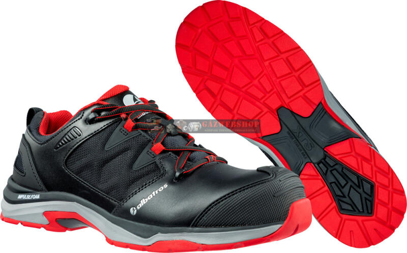 646200 Albatros Védőcipő - Ultratrail Black Low S3 ESD HRO SRC Teljesen fémmentes! Üvegszálas orrmerevítő vel és hajlékony kerámiaszál as talpátszúrás elleni védelemmel van ellátva. Bőr felsőrész, kopásálló textil illesztésekkel. Anatómiailag kialakított, kivehető talpbetéttel. ESD tulajdonság. Magas minőségű, 300°C-ig hőálló , csúszásmentes, gumi talp, Impuls