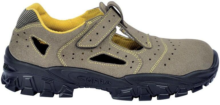 BÉZS VELÚRBŐR VÉDŐSZANDÁL SZÖVET/ACÉL TALPLEMEZ MODELLCSALÁD JELLEMZŐI: Strapabíró és kényelmes védőlábbelik acél kaplival és talplemezzel. TALP: Kétrétegű poliuretán talp. Csúszásmentes kialakítás (SRC), energiaelnyelő sarokrész (E), antisztatikus tulajdonságok (A), szénhidrogénekkel (pl. olajjal) szembeni ellenállás. KÉNYELMI TALPBETÉT: EVANIT anatómiai kiala