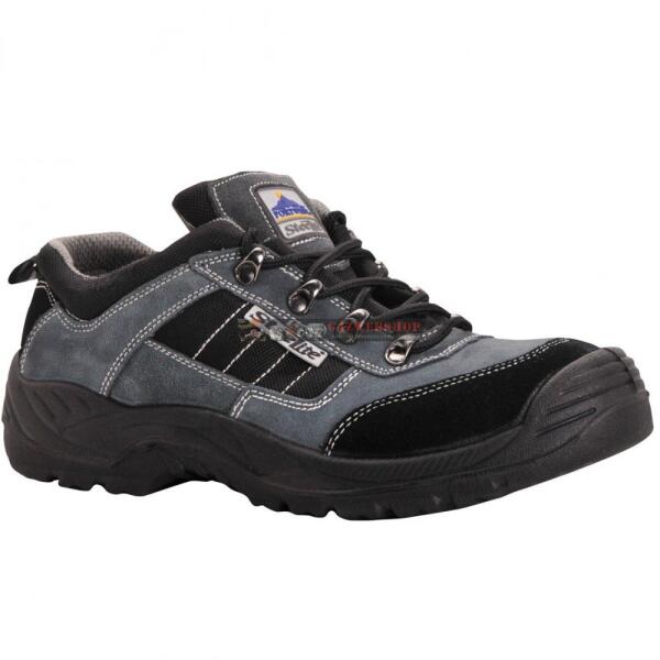 Portwest FW64 Steelite Trekker Védőcipő S1P EN ISO 20345:2011 ASTM F2413-11 X Az FW63 Védőbakancs félcipő változata. Modern védőcipő, 200 J acél ormerevítővel és talplemezzel, kétrétegű, csúszásmentes talppal. 3D lélegző hálós bélés Elérhető unisex méretezésben Hátsó és elülső húzófül a felvétel megkönnyítése érdekében Velúr és textil felsőrész Párn