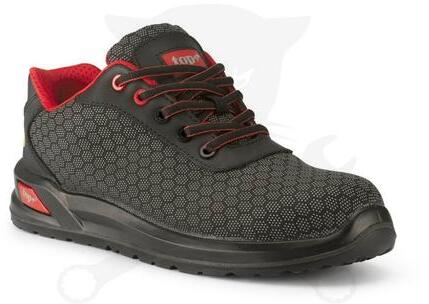 HEXA S1P ESD SRC védőcipő letisztult és sportos megjelenése szinte megkülönböztethetetlen egy utcai lábbelitőlTulajdonságok: S1P SRC ESD védelem, csúszásbiztos talp Kompozit orrmerevítő Kevlár talplemez Antisztatikus- és olajálló talp Külső talp anyaga: PU/PU Szellőző szendvics bélés Felsőrész: TPU nyomattal ellátott textil Fémmentes lábbeli