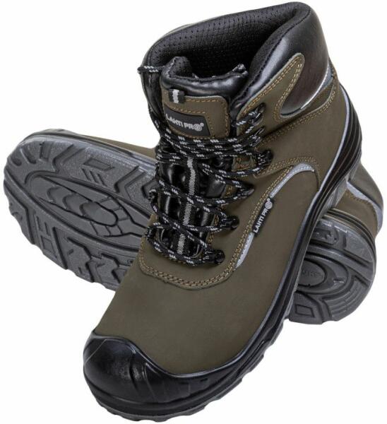 Anyag: Felső része: bőr. Bélése: textil anyag. Kivehető talpbetét. Talpa: dupla sűrűségű poliuretán, modern design, sarkoknál hajlított, magas oldal a stabilitás és a kényelmes járás érdekében. Zárt sarokrész, antisztatikus tulajdonságok. Energiaelnyelő sarokrész. MUNKAVÉDELMI KAT. : O1 SRC NORMA: ISO 20347:2011