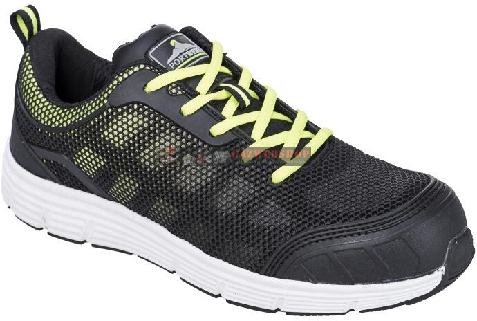 Portwest FT15 Tove Trainer Védőcipő S1P A sportos stílus és a klasszikus védelem kombinációja. A TPU öntött felsőrész és a hálós gumírozás biztosítja a lélegzést és a kényelmet. A kétrétegű EVA/gumi talp és az acélbetétek komfortot és maximális védelmet nyújtanak. Alapanyag:- felsőrész: KPU/háló, - talp: EVA/Gumi. Acél orrmerevítővel, acél talpátszúrás el