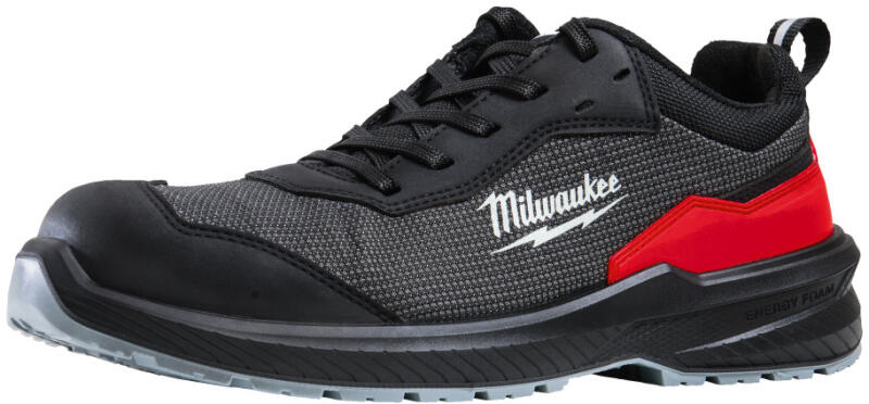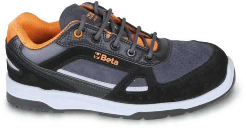 Utcai jellegű mérsékelten vízálló, perforált hasítottbőr és mikroszálas cipő karbon betétekkel. Kompozit anyagú orr- és talplemez az ütések és talpátszúrás ellen. Olajálló SRC csúszásmentes talp, energiaelnyelő sarok, antisztatikus lábbeli. Szabvány: EN ISO 20345 2011