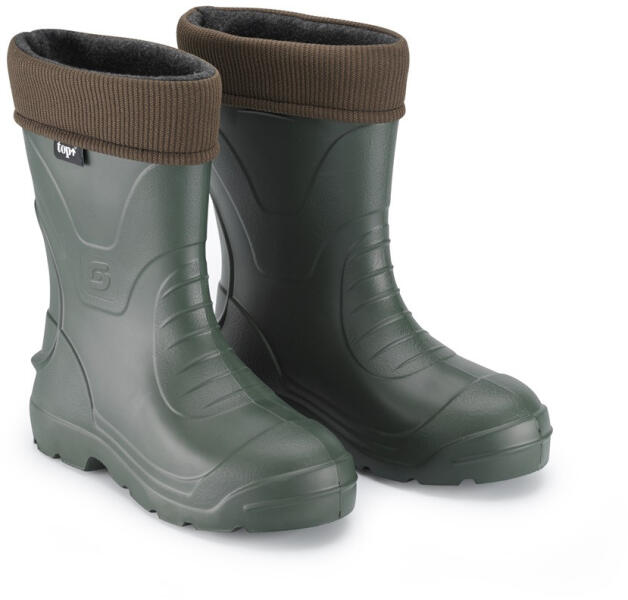 TOP MELDAL extra könnyű EVA hab csizma, rövid szárral és SRB csúszásbiztos talppal. Tulajdonságok: Anyaga: extra könnyű EVA hab. Talp: SRB csúszásbiztos, rugalmas, energiaelnyelő. Vízálló. Bélés: kivehető és mosható. Bélés nélkül akár nyáron is kényelmes viselet. Kiváló hőszigetelő képesség -30°C -ig. Könnyen tisztítható. Zöld szín. Méret: 41-48 Csomagolás