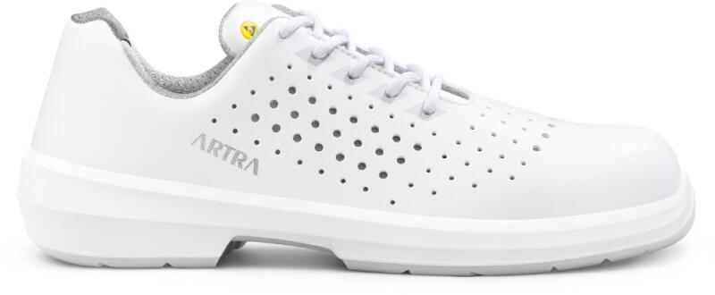 Modern, sportos kialakítású 100% fémmentes munkavédelmi cipő lyukacsos felsőrésszel. Hidrofób mikroszálas anyagának köszönhetően jó légáteresző képességgel rendelkezik, tökéletes választás egészségügyi vagy élelmiszeripari dolgozóknak. Felsőrész A cipő felső része hidrofób mikroszálas 2.2 mm vastag MICRO PRO bőrből készült, mely kiváló ellenállóképessé