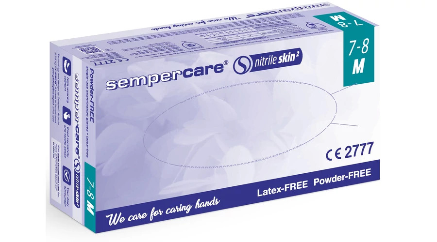 SSKIN100_06 SEMPERCARE NITRIL SKIN ( NITRIL ) KÉK PÚDER NÉLKÜLI VIZSGÁLÓ KESZTYŰ Típus egyszer használatos védőkesztyű, nem steril Címkézés címke az adagoló dobozon Kesztyűforma mindkét kézen hordható – egyenes ujjakkal Anyag nitril-butadién gumi (NBR) [természetes latexmentes Szín levendula kék Belső oldal púdermentes Külső oldal kezeletlen Szárak I külső felüle