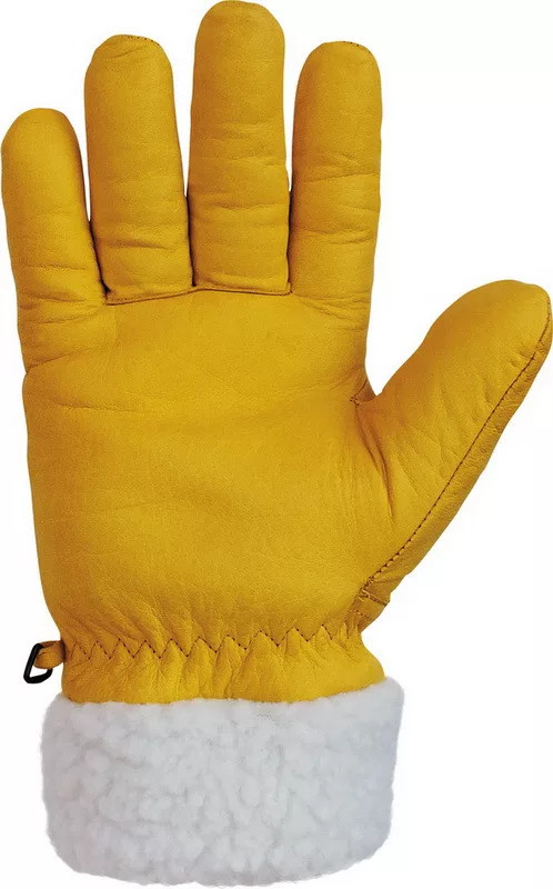 BŐRKESZTYŰ, HŰTŐHÁZI, SÁRGA BORJÚ SZÍNBŐR /SZŐRMEBÉLÉSSEL 32CM_12 hűtőházi kesztyű borjú színbőr, szőrme béléssel 32 cm hosszú méret: 12 EN ISO 21420; EN 388 (3123X); EN 511 (220)