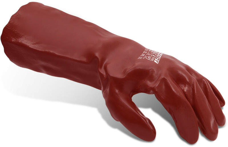 Eladási egység: 1pár PVC mártott bevonattal ideális a sav, lúg és zsír elleni védelemhez. Nedves körülmények között is használható. A kesztyű megfelel a 2016/425 sz. európai irányelvnek, valamint a harmonizált MSZ EN 420 szabványnak. Védelmi szint: Az EN388 szabványnak megfelelően: 2121 dörzsállóság: 2; vágásellenállás: 1; továbbszakadási ellenállás: 2; szúrás