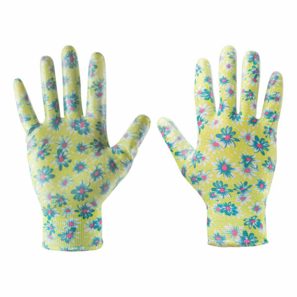 Tulajdonságok Lélegző külső szövet II kategória Dörzsállóság: 4 Átvágásállóság: 1 Tépésállóság: 3 Átszúrásállóság: 1 Univerzális kerti kesztyű (ref. szám 97H140) összehúzókkal kiegészítve és nitrillel bevonva, virágmintás, ideális a kerti munkák végzéséhez A nitril bevonat növeli a szerszámokhoz és az anyagokhoz való tapadást Teljesen folyadékszige
