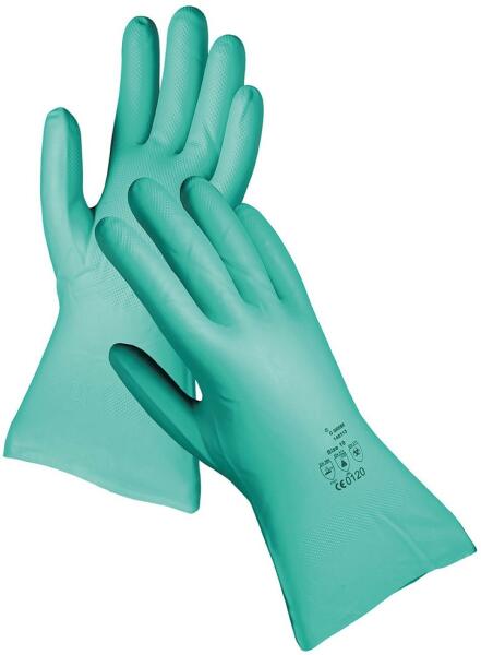 Grebe védőkesztyű nitril zöld 33 cm 0,38 mm vastag nitril kesztyű, belül pamut belsővel, a tenyéren és az ujjakon textúrált felülettel rendelkezik. Kézresimuló kesztyű. Kitűnő megoldás takarítási munkák elvégzéséhez. Védje a kezét az irritáló anyagoktól, vegyi, olajos szennyeződésektől ennek a kesztyűnek a használatával. Minimális rendelési mennyiség 1 pár. K