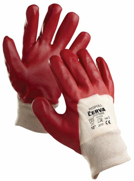 REDPOLL - félbemártott kesztyű 10-es PVC méretben. Pamutból kötött, rugalmas kötött kesztyű, félig PVC-be merítve a tenyérben és az ujjakban.