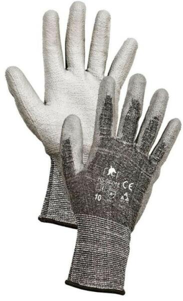 Vágásbiztos kesztyű Cut5 Kötött vágásbiztos munkavédelmi védőkesztyű, 5-ös vágásbiztonsággal. Anyag összetétel: üvegszál-nSpandex/nylon alapanyag, tenyéren Poliuretán mártással, rugalmas mandzsettával. Kiszerelése : 12 pár / csomag. Minimális rendelési mennyiség 1 csomag /méret. A gyári bontatlan karton 120 pár kesztyűt tartalmaz. Ez a vágásbiztos munkavédelmi k