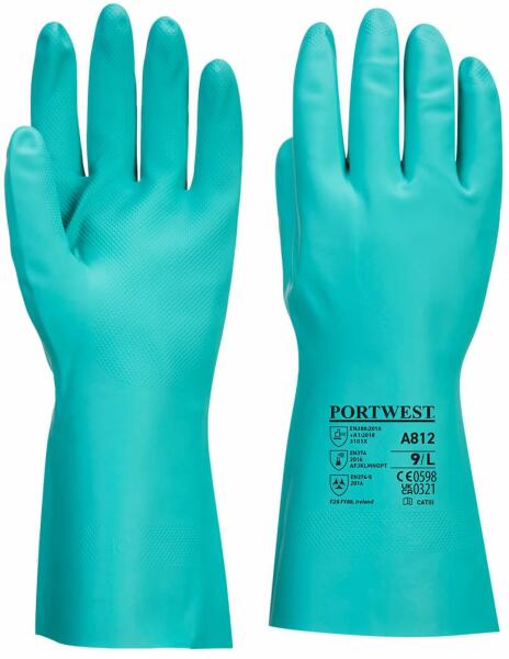 Vékony anyagú, vegyszerálló kesztyű Több mint egy nitril kesztyű az A812 ami tesztelve lett számos és gyakori anyagra, ami a vegyiparban használatos. Csúszásgátló kialakítás száraz és nedves környezetben egyaránt. Az ultraérzékeny és oldhatatlan fehérjék csökkentik az allergiás reakció kockázatát. Vékony, 0,38 mm vastagú , 32 cm hosszú kialakítás számos iparág