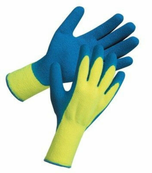 Hideg körülményekre kifejlesztett kesztyű Akril védőkesztyű kék latexbe mártva Az akril anyag tartóssága és a latex mártás vízállósága fokozza a védőkesztyű kellemes viselésének hosszát. Szín: sárga- kék Minimális rendelési mennyiség 12 pár. A gyári bontatlan csomag 12 pár kesztyűt tartalmaz. A gyári bontatlan karton 60 pár kesztyűt tartalmaz. A termék megfele