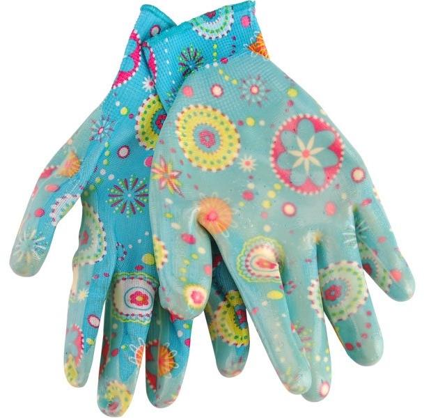 A virágmintás kerti kesztyű kiváló választás minden kertész számára. A kesztyű anyaga nylon, amely könnyű és kényelmes viseletet biztosít. A kesztyű mérete 8-as, így tökéletesen illeszkedik a kézre. A tenyér és az ujjhegyek nitrilbe vannak mártva, így kiváló védelmet nyújtanak az olaj és zsír ellen. A gumírozott mandzsetta biztosítja, hogy a kesztyű jól tartson