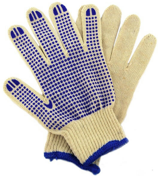 kötött kesztyű, fehér, pamut, PVC pöttyökkel, méret: 10'