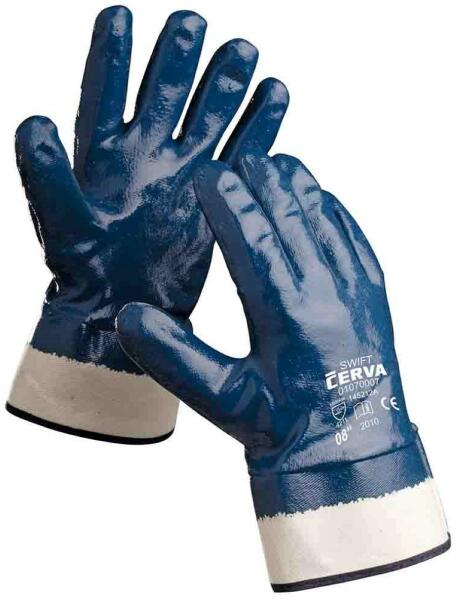 A termék megfelel az EN420, EN 388 szabványoknak. Nitrilben ökölcsontig mártott, varrot pamutkesztű, antisztatikus, csúszásmentes. Széles mandzsettával, ami védi a munkaruha ujját. A kesztyű alkalmas erősen olajos környezetben is, dörzsölésnek kiválóan ellenáll. Ez a védőkesztyű méretenként 12 páras csomagokban van, minimális rendelési mennyiség méretenként 1 csomag