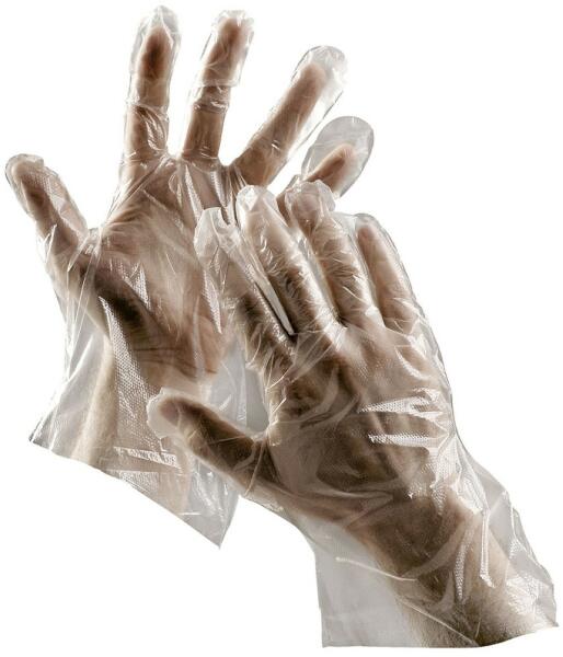 Egyszerhasználatos polietilén kesztyű Megfelelhet a HACCP által előírt feltételeknek. Élelmiszerrel közvetlenül érintkezhet. Élelmiszerekkel való rövid idejű érintkezésre alkalmas, polietilén fóliából készült, egyszer használatos kesztyű. A nejlon kesztyű anyag vastagsága: 0,018 mm vastag a termék. Kiszerelés: 100 darab / csomag Szín: Áttetsző