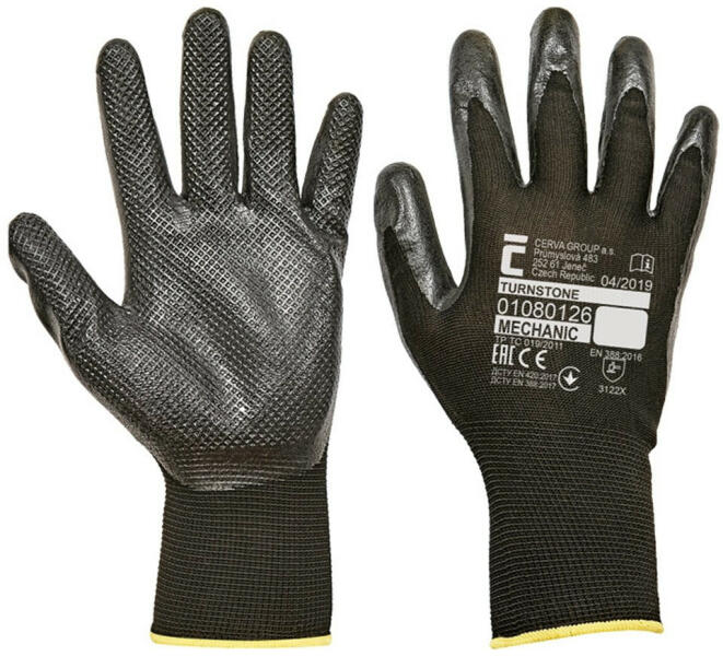 Munkavédelmi kesztyű nitrilbe mártva Kötött poliészter védőkesztyű tenyéren és az ujjain különleges, csúszásbiztos nitril mártással, rugalmas mandzsettával. Szín: Fekete Kiszerelése: 12 pár / csomag. Minimális rendelési mennyiség 1 csomag /méret. A gyári bontatlan karton pár kesztyűt tartalmaz. Ez a mártott védőkesztyű megfelel az EN420, EN 388 szabványoknak. 3.1.
