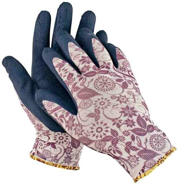 Kézre simuló, női mártott kertészkesztyű Kötött nylon védőkesztyű rugalmas mandzsettával, habosított latexbe mártva. Alapanyag: rugalmas nylon anyagból készült kesztyű habosított latexbe mártva. A termék megfelel a EN 388, EN 420 szabványoknak. Szín: Lila 3.1. 3.1.