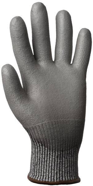 Megfelelő éles tárgyakhoz száraz vagy enyhén olajos környezetben maximális szakítás- és kopásállóságú, D színtű TDM vágásbiztosságú, 13-as kötésű, szürke, multiszálas (HPPE, ásványi szálak. PA és elasztán) védőkesztyű tenyerén szintén szürke, kopásálló PU mártás szellőző kézhát, gumírozott mandzsetta Ideális éles tárgyak száraz környezetben tört