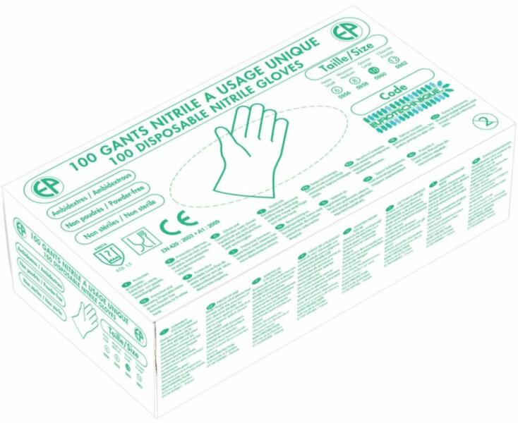 Rugalmas, egyszer használatos, vegyszerálló nitril kesztyű egészségügyi, egyszer használatos nitril kesztyűk vegyszerálló, rugalmas, mindkét kézen használható mikroorganizmusok elleni védelem folyadékok behatolásával szembeni védelem AQL: 1,5 MÉRET: 7, 8, 9 és 10-es CSOMAGOLÁS: 100 db/doboz 5956-62: élelmiszerek kezeléséhez is használható, zöld színű, púdermentes v