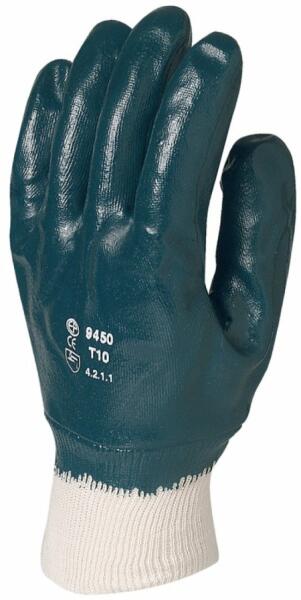 NITRIL ECOLINE CSUKLÓIG KÉTSZER MÁRTOTT MECHANIKAI KESZTYŰ: pamutra csuklóig kétszer mártott kék nitril mártott kézhát, gumírozott mandzsetta nedves körülmények közt is használható Ecoline® változat mechanikai ártalmak ellen méret: 8-as csomagolás: 100/10 EU szabvány: EN420, EN388: 4211