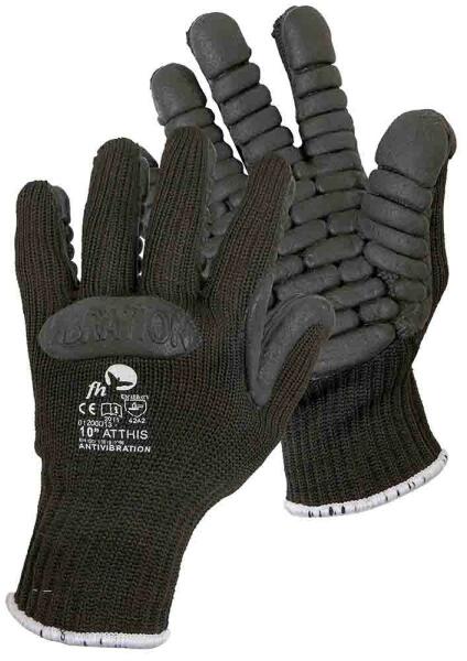 Cikkszám alatt megtalálja az aktuális készletinformációt. Tanúsítással rendelkező rezgés ellen védő kötött kesztyű, pamut és poliészter kevert szálból, nitril vibráció csökkentő párnákkal a tenyéren és az ujjakon. EN 10819