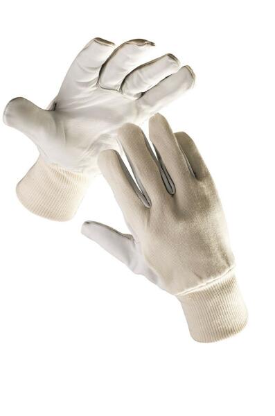 Kecskebőr védőkesztyű Ez a védőkesztyű megfelel az EN 420 szabványnak. Finom színkecskebőrből varrt tenyerű és fehér pamutszövet kézhátú védőkesztyű kötött mandzsettával. Ez a védőkesztyű méretenként 12 páras csomagokban van, minimális rendelési mennyiség méretenként 12 pár. (az egységcsomagot nem áll módunkban bontani)