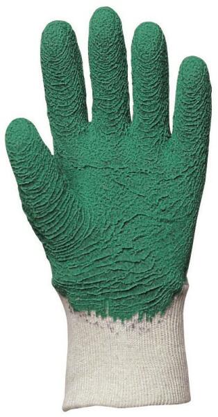 Nagy igénybevételre tervezett védőkesztyű, kopás- és vágásbiztos pamutra ökölcsontig mártott zöld latex, vízbázisú, oldószermentes bőrbarát, gumírozott mandzsetta kopás- és vágásbiztos, 1,8 mm vastag, nagy igénybevételre tervezett védőkesztyű megerősített csúszás elleni érdesítés MÉRET: 7, 8, 9 és 10-es CSOMAGOLÁS: 72/12 Minősítések EN420 EN388: 2016 3242X