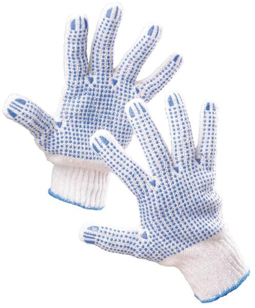 Kötött mikropöttyös pincérkesztyű Kötött pamutkelméből varrt, mandzsetta nélküli cérnakesztyű PVC-vel pontozott tenyérrel és ujjakkal, valamint rugalmas szalaggal a csukló felső részén. Ebből a kesztyűből 12 pár van egy csomagban. Minimális rendelési mennyiség 1 csomag / méret. A termék megfelel az EN 388 szabványnak. EN 388 EN 21420 (111XX)