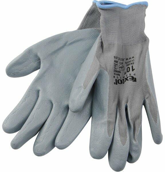 EXTOL PREMIUM Kötött kesztyű szürke nylon, méret: 10' nitrilbe mártott teny. és ujjhegy. , gumírozott mandzsetta Leírás A kesztyű külső mechanikai behatások elleni védelemre szolgál. Védelmi fokozat: 4121 Védelmi fokozat dörzsölés ellen: 4 Védelmi fokozat pengével való megvágás ellen: 1 Védelmi fokozat szakítás ellen: 2 Védelmi fokozat átszúrás ellen: 1 A nitrilbe