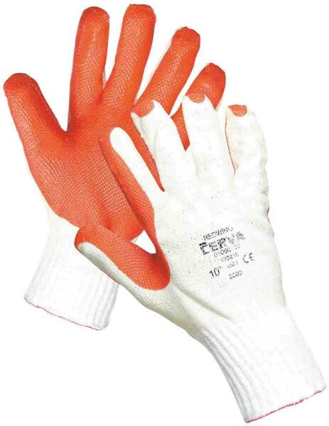 Erős, vastag latexbe mártott tenyerű kesztyű Erős poliészter/pamut kevertszálas kötött, latexbe mártott védőkesztyű további erős latexréteggel a tenyéren és az ujjakon, valamint rugalmas kötött mandzsettával. Fehér / Narancs Ez a tenyéren mártott védőkesztyű megfelel az EN420, EN 388 szabványoknak. 3.2. 3.2.