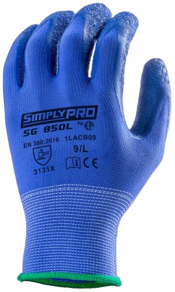 13-as kötésű kopásálló poliészter alapkesztyű, tenyerén latex mártás 13-as kötésű kopásálló kék poliészter alapkesztyű tenyéren kék színű latex mártás, csúszásbiztos felülettel nedves környezetben is extra csúszásbiztosság kényelmes formai kialakítás rugalmas, gumírozott mandzsetta MÉRET: 6, 7, 8, 9, 10 és 11-es CSOMAGOLÁS: 100/10 Minősítések EN388:2016 3