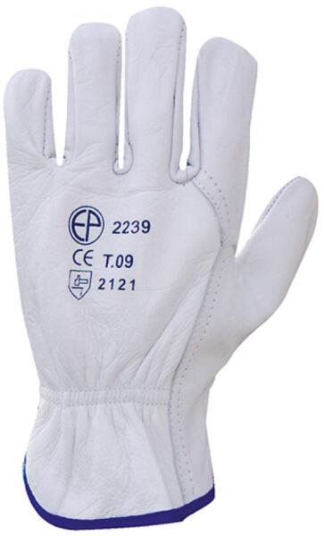 Finom hasított bőr tulajdonságaival rendelkező szintetikus anyagból varrt kesztyű csúszásgátló felületű ujjakkal, erősített tenyérrésszel, könnyű mozgást biztosító finom nylonszövettel az ujjak oldalán és tépőzárral állítható mandzsettával.