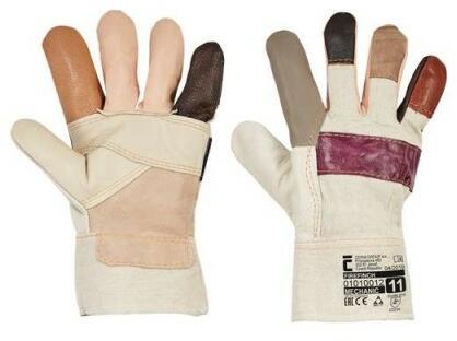 Kombinált védőkesztyű színes marha bútorbőr, melegen bélelt tenyér, kézfej és mandzsetta pamutból. Készletinformáció:11 50 - 99 PÁR