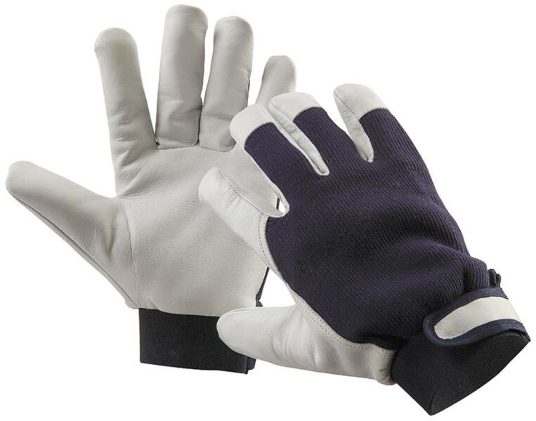 Bélelt kecskebőr kesztyű Finom színkecskebőrből varrt tenyerű és kék pamutszövet kézhátú, polárral bélelt kesztyű, tépőzáras mandzsettával. A kesztyű méretenként 12 páras csomagokban van, minimális rendelési mennyiség méretenként. 1 csomag (12 pár) az egységcsomagot nem áll módunkban bontani.
