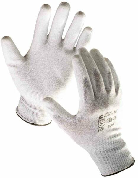Ez az ESD-s védőkesztyű megfelel az EN420, EN 388 szabványoknak. Kötött, varratmentes, antisztatikus nylon kesztyű integrált szénszállal, poliuretán bevonatú tenyérrel és ujjakkal, valamint rugalmas mandzsettával. Ebből a védőkesztyűből 12 pár van egy csomagban, minimális rendelési mennyiség 1 csomag / méretenként. ( az egységcsomagot nem áll módunkban bontani ) Szín: