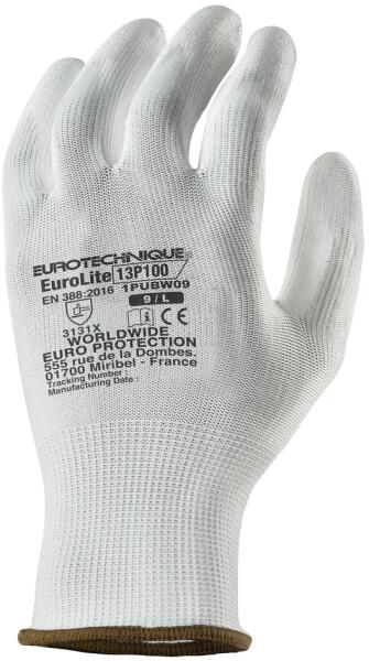 13-as kötésű, poliészter védőkesztyű, fehér színben tenyerén kopásálló PU mártás kiváló fogásbiztosság, kényelmes és tartós Külön csomagolva szellőző kézhát, gumírozott mandzsetta MÉRET: 6 CSOMAGOLÁS: 100/10