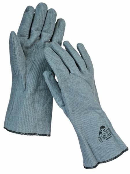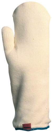 180201. cikksz. NOMEX® EGYUJJAS HŐÁLLÓ, VÁGÁSBIZTOS BÉLELT KESZTYŰ 33 CM: 1210 g/m2 vastag, hőálló, vágásbiztos, kötött Nomex® szál teljes hosszában vastag pamuttal bélelt 350° C kontakt hőhatásnál 15 sec időtartamig nyújt különlegesen jó védelmet 33 cm hosszú, egyujjas változat CSOMAGOLÁS: 50/5 EU szabvány: EN420, EN388: 134X, EN407: 4343XX