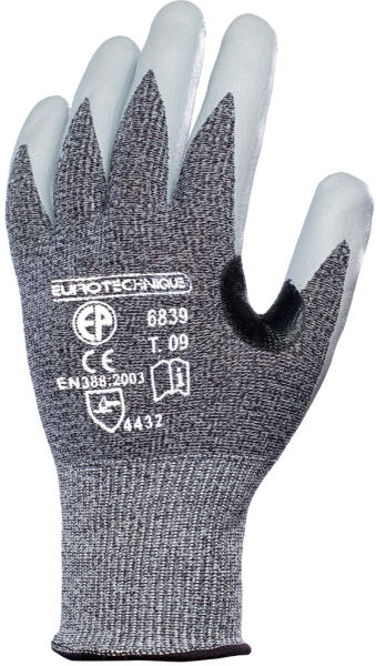 EURO4 VÁGÁS- ÉS KOPÁSÁLLÓ KOMPOZIT TENYÉREN BIPOLIMER NITRIL/PU MÁRTOTT FEKETE KESZTYŰ: EURO4 nagy szakítás- és kopásállóságú, 10-es kötésű alapkesztyű, vágásbiztos HPPE, kompozit szintetikus szálakból tenyéren szürke, kétkomponensű, hajlékony, olajálló nitril/poliuretán bipolimer mártás rugalmas mandzsetta, szellőző kézhát méret: 6-os csomagolás: 100/10 EU
