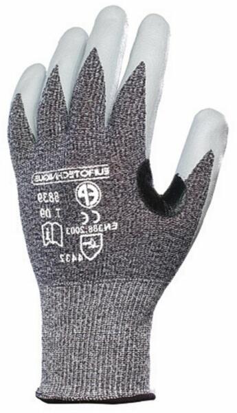900030. cikkszám, * EN420, EN388: 4432 * EURO4 VÁGÁS- ÉS KOPÁSÁLLÓ KOMPOZIT TENYÉREN BIPOLIMER NITRIL/PU MÁRTOTT FEKETE KESZTYŰ: EURO4 nagy szakítás- és kopásállóságú, 10-es kötésű alapkesztyű, vágásbiztos HPPE, kompozit szintetikus szálakból tenyéren szürke, kétkomponensű, hajlékony, olajálló nitril/poliuretán bipolimer mártás rugalmas mandzsetta, szellőző k